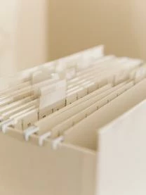 Die Hängeregister-Box mit acht Mappen und einem Deckel ist für Dokumente bis DIN A4-Format geeignet.