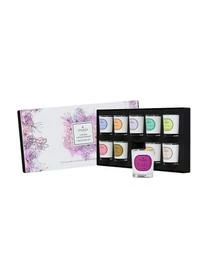 Die zehn Duftkerzen mit unterschiedlichen Duftrichtungen (Kamille, Veilchen, Pfirsich, Amyris, Lavendel, Zitronengras, Minze, Maiglöckchen, Rose, Sandelholz, Ylang Ylang, Tuberose, Muskatnuss, Vanille, Wilde Feige, schwarze Johannisbeere und Orangenblüte) verwandeln Ihre Räumlichkeiten in wunderbare Duftoasen. Die Brenndauer jeder dieser Kerzen beträgt circa zwölf Stunden. Die Lieferung erfolgt in einer dekorativen Geschenkbox.