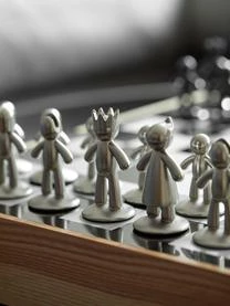 Das Schachspiel Buddy besteht aus 32 Spielfiguren und einer Aufbewahrungsbox mit Schachbrett. Alan Wisniewski und Wesley Chau designten das Schachbrett so, dass die Figuren unter dem Schachbrett verstaut werden können.
